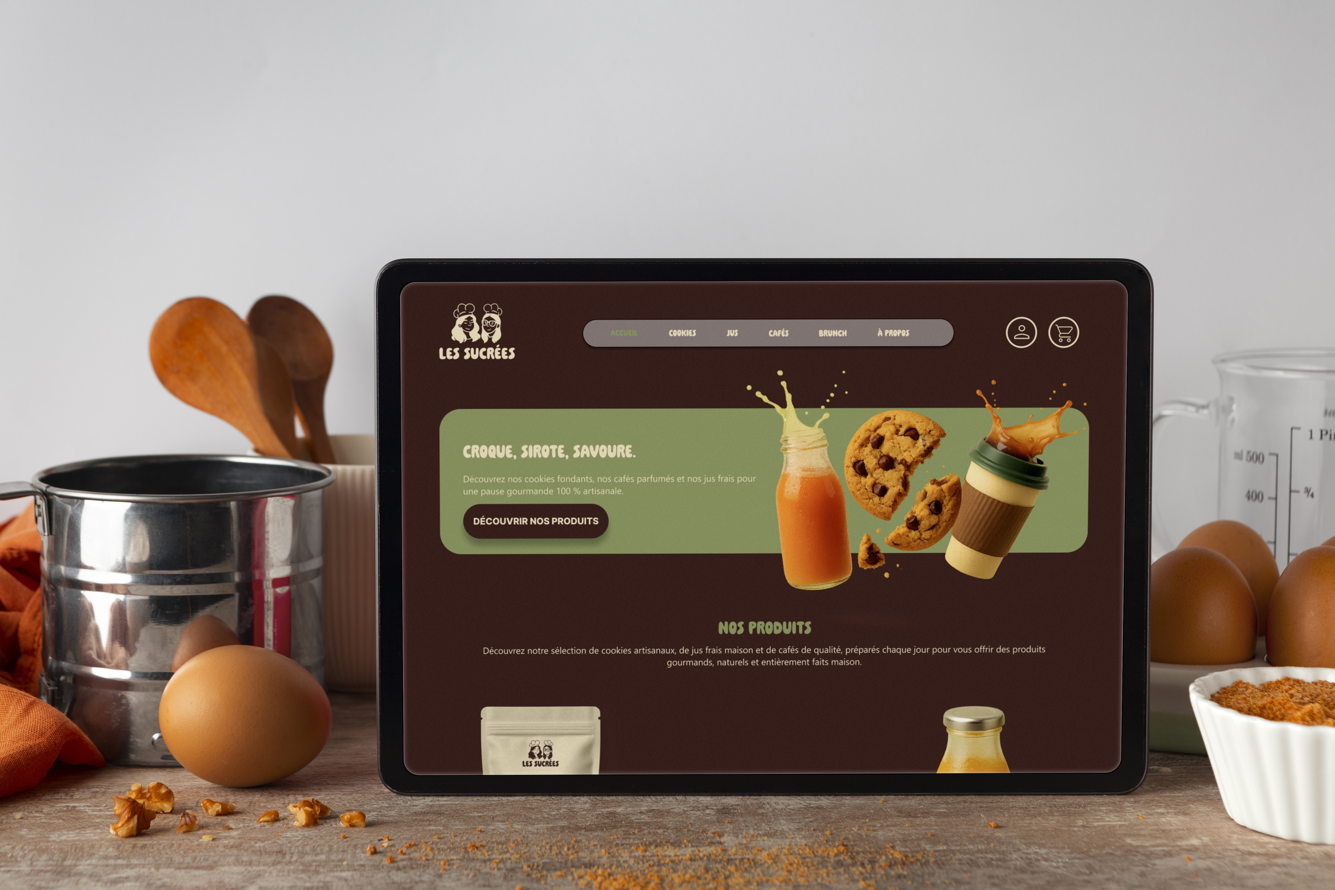 Dans le cadre d’un projet scolaire en binôme, réalisé en cours de webmarketing, j’ai participé à la création de Les Sucrées, une marque fictive imaginée de A à Z.